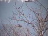 2羽のホオジロの続きです。枝に止まっていた2羽がほぼ同時に羽ばたき、少し飛んだ後、再び、枝に戻ってきました。飛行の様子は30分の1秒間隔で採録しました。周囲に枝があると枝を避けるようにこのように垂直になって羽ばたくようです。