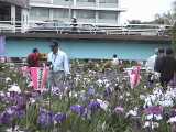 ここからは前川あやめ園のあやめ(殆どはハナショウブ)の風景をたっぷりとご紹介します。この日の観光客のピークは、潮来花嫁さんの舟行、あやめ音頭の踊りなどが繰り広げられる11:00頃ではないかと思います。この時間は12:00を過ぎていますので、少し観光客の数は減っているのかもしれません。それでもさすがに人出が多いですね。あやめ園にはあやめに混じって、スイレンが美しい花を咲かせていました。霞ヶ浦の湖岸ではおなじみのハスとは違います。スイレンはフランス印象派の絵画によっても有名になりましたが、スイレンは昔から日本にあったものではないと思います。