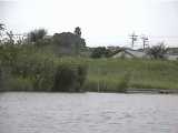 常陸利根川河岸に延びる葦原が印象的です。この葦原が少し途絶えた辺りに潮来ふるさと館が見えます。この辺の河岸には車が入れるようです。