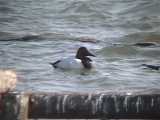 水原の白鳥飛来地には数多くのホシハジロが飛来していました。よく見ると1羽だけ少し違う種類の鳥がいることに気づきました。これがその珍しい鳥、オオホシハジロです。手元の野鳥図鑑には「霞ヶ浦に6〜7羽の一群が渡来したこともある」と説明されています。オオホシハジロは昨年も飛来したようですが、私も初めてこの珍しい鳥を見ることができました。御覧のとおり、私のすぐ目の前にもやってきて餌を求めています。たった1羽なのでしばらく目を離すとどこへ行ってしまったのか再び見つけるのが大変でした。野鳥愛好家の間ではこのオオホシハジロがもっぱらの興味の対象となっているようでした。