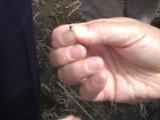 このジャポニカ黒米の刈り取られた稲の刈り跡からは新たな芽が生えています。その芽を見ると、葉には黒っぽい色の筋が入っています。これが特徴ですね。