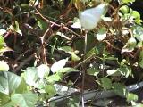 さて、この中に蝶々がいます。蝶々はどこにいるでしょうか? わかりますか? 及川さんに解説していただいたのでその場で蝶の名前がわかりました。ウラギン。羽の裏側が銀色をしているということなのでしょう。表はオレンジ色と茶色の混じった色をしています。羽を立てていると、両面が銀色(というよりは白く見えます)になって、葉っぱの一枚が付いているようにみえます。