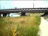 雨雲の混じるどんよりとした空に差し込む陽光が大変印象的でした。桜川の河川敷から堤防沿いの桜並木を見上げるような構図が、この空の風景を一層印象的にしています。河原の葦とススキも印象的です。ちょうど、この時、JR常磐線の鉄橋を上りの電車が通過していきました。