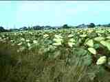 ここからはたっぷりとハス田の風景をご覧いただきましょう。実に見事なハス田ですね。この広大さは圧巻です。日本一のレンコンの産地ならではのハス田ですね。ハス田は、霞ヶ浦土浦入北岸の木田余からかすみがうら市志戸崎にかけて延々と続いています。その中でも、この石田集落周辺、手野町のハス田が一番広大です。ところで、実は、ハス田の道は、一段と狭くなります。その道の入口には「軽トラック程度しか通れません」という立て札が立っていました。農作業の車も見えないので、迷惑にならないだろうと思い、無謀にもハス田の細道を進みました。