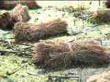 これも特徴的な風景でした。収穫を終えたハス田に藁束が放り投げられていますね。この藁束はどのように利用されるのでしょう。