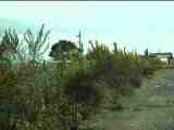 土浦市田村町の湖岸道を進んでいきました。湖岸の社の森が印象的です。フェンスが張られた区域には背の高い雑草が茂っていますが、ここは何の敷地になっているのでしょう。前日、雨が降った後なので、舗装されていない湖岸道には至るところに水たまりができていました。