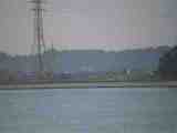 鰐川西岸2.50km地点から鰐川を捉えてみました。鰐川の北方向から南方向にパンニングしました。鰐川の対岸(東岸)は鹿嶋市の大船津→根三田→鰐川の河岸です。北方向には、北浦と鰐川の境界に架かる神宮橋が見えます。あまりに平坦さに距離感覚が掴めません。神宮橋まで2.5km、神宮橋が約1kmというスケールで周囲の広さを目分量で測ってみると、改めてこの流域の広さが想像できるのではないでしょうか。鰐川は根三田と鰐川の境界辺りでほぼ90度角に大きく蛇行します。鹿島臨海工業地帯が意外に間近に迫って見えます。ここに捉えられている大きな工場は住友金属鹿島工場ではないかと思います。住友金属はこの地点からは約4kmは離れているはずですが、建物が大きいせいか、この距離感覚もなかなか実感できません。対岸・北方向の背後には鹿島台地が広がっています。こうやって見ると、鹿島に占める台地の割合の多いことを実感させられます。