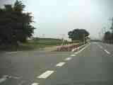 新生開拓の道路は、土盛りされて高くなっていますね。昔からこうだったかどうかはわかりませんが、道路を大雨から守る、用水路を道を横断して通すなどの配慮がされているのでしょう。新生集落は、終戦直後、引揚者が開拓を始めて形成された比較的新しい集落ですが、既に何十年かの時が経過すると、集落はこのように特色ある落ちついた佇まいを整えるのだろうかと、この土地の新しくも古い歴史を偲ぶ思いがします。集落の屋敷の縁には、古い用水路の支線が走り、かつてはむき出しだった用水路の上にコンクリートの蓋が被されて、それも年月の経過と共に集落の風景に馴染んできました。