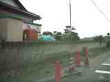 土浦五中角の交差点を曲がり、出島用水沿いと思われる道路を進みました。確かに途中には、分水場と思われるものを確認しました。ただ、出島用水の痕跡らしきものは見あたりません。おそらく畑の下を通りながら、沿道から徐々に外れているのではないかと想像します。この沿道には、土浦市老人福祉センター・湖畔荘があります。湖畔荘は、新治台地の縁の高台にあります。出島用水の地下パイプラインは、この湖畔荘の真下を通って、その坂下の手野第一機場へと真っ直ぐに下りているはずです。湖畔荘の横の坂道を下り、手野第一機場の空き地を過ぎ、その坂下に記念碑があるのを発見しました。
