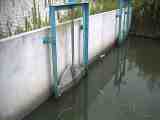 出島用水の霞ヶ浦湖岸側に堰が設けられています。この樋管は、ご覧のとおり外観は極めてシンプルなものです。この地点が、これまでずっとたどってきた出島用水の始点になります。