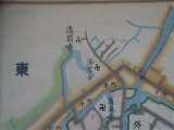 土浦城祉・櫓門の前に「明治4年の土浦城」という興味深い地図がありました(明治4年は1871年)。この地図を見ていただければ、土浦城下が霞ヶ浦湖岸の低湿地に形成されたことが一目瞭然ではないでしょうか。旧川口川は桜川の古い川筋になります。旧桜川は、かつては土浦城の堀から川口川に至る川筋を成しており、城も水害に見舞われていたことから、1459年から3年かけて、当時の土浦城主・若泉三郎が、旧桜川の大規模な河川付け替え工事を行ったと伝えられています。土浦城下は、陸地というより、低湿地に形成された人工の島といった方が当たっている気もします。明治に至ってもなお、沼地、低湿地が亀城公園の近くにまで迫っていたことがわかります。現在の土浦市街の中心部となった土浦駅の周辺がどのような状況の場所であったかも想像できますね。さらに、現在の道筋とこの地図を重ね合わせてみると、この当時の道筋の多くが現在に残り、川筋、堀筋が埋め立てられ、新たな道筋となって現在の市街が形成されたことがわかります。