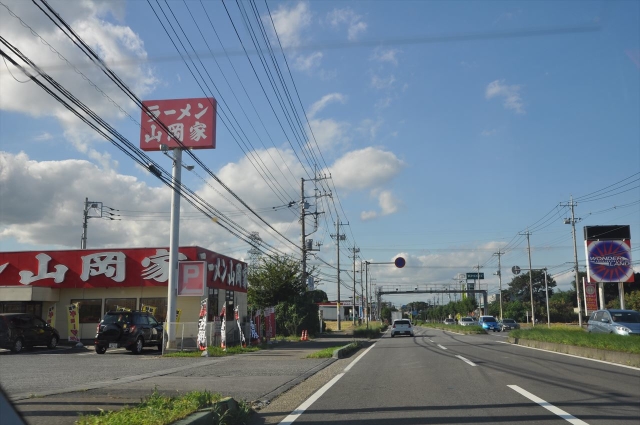 TX守谷駅前からR294に沿い、水海道方面に向かって進んでいます。R294は片側2車線の道路でよく整備されています。沿道には食事処と工場が点々と建ち並んでいます。