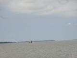 霞ヶ浦の最下流から上流を眺めると、対岸は遠く、霞ヶ浦の広大さを実感できます。