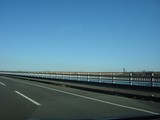 波崎の市街地を通り、利根川河口に出てみました。はさきかもめ公園に車を停め、小さな展望台から周囲を見回してみました。眼前の小さな埋立地は波崎漁港の堤防につながっています。対岸は銚子市です。利根川河口の川幅は6〜700メートルほどあるはずですが、展望台の高さが低いせいか、それほどの川幅があることは実感できません。