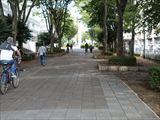 つくば公園通りは、南北に細長く続く筑波研究学園都市の背骨のように全体を貫く遊歩道です。なにせ都市全体が広いので、自転車で移動する人も多いのはつくば市の特性です。