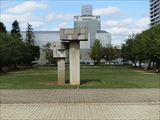 筑波研究学園都市の中心部にある大清水公園。北側は大通りの土浦学園線に接し、南側には文化施設「つくばカピオ」があります。ここの空間の広々とした感じがよい。何人もの人たちが伸び伸びと遊んでいます。
