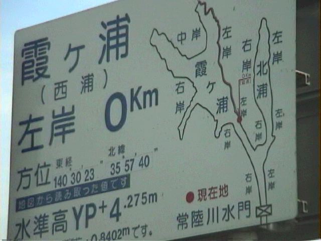 霞ヶ浦左岸0km標識
