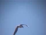 この日はアジサシが何羽も飛んでいました。その中に混じって、アジサシよりは少し大きな鳥、ユリカモメが飛んでいました。これまでにも度々ユリカモメを見てきました。この日は曇天だったせいか、鳥の姿がシルエットにならずに羽の色合いを比較的よく捉えることができました。