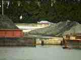 土浦新港を眺めて見て、第一に目につくのは、この砂山でしょう。新川側の湾内の岸壁に延々と砂山が出来ています。霞ヶ浦では、底泥の浚渫が行われていますが、この砂は、浚渫された底泥とは別物で、土木工事用、コンクリート材の資源として、霞ヶ浦から採取される砂、砂利です。年間、50万トンが霞ヶ浦から採取されると言います。霞ヶ浦の資源として砂が活用されているとは、意外な側面でした。「映像クリップ」には、延々と砂山を撮り続けた映像をクリップしました。よく見ると、砂、砂利の質に違いがあるようです。下の資料によると、「霞ヶ浦の砂利質は、砂岩、安山岩、凝灰岩など」で、「二万八千年から三万五千年前の霞ヶ浦には、鬼怒川が流れ込んでおり、現在採取されている砂利は当時のもの」と言います。 (参考資料『霞ヶ浦、21世紀へ 世界湖沼会議の記録』、常陽新聞社、1997、pp. 22-23)
