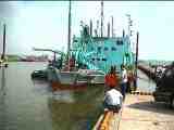 大規模浚渫に用いられる浚渫船には、建設省の「カスミザウルス」などの他、民間の浚渫船があります。株木建設のクリアウォータ号もその一つです。現在、I・II・III号があるようですが、この時は、I・II号が停泊していました。