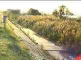 美浦村木原の湖岸に取水施設があります。許可標識には、「取水施設及取水樋管」、占有目的は「水道事業の為」としか表示されていません。これでは、何の施設かよくわかりませんね。この施設は、土浦市など霞ヶ浦流域市町村の上水道水を取水する施設になっています。「霞ヶ浦の水が上水道として供給されたのは、五七年に認可された霞ヶ浦水道組合(県、土浦市、阿見町)が最初。その後、県が事業を継承し、取水口を土浦市大岩田地先から美浦村木原沖に移した。」 (『霞ヶ浦、21世紀へ 世界湖沼会議の記録』、常陽新聞社、1997、pp. 44-45) なるほど、ここがその取水施設だったのかとわかりました。ここから取られた水は土浦市大岩田の霞ヶ浦浄水場に送られ、浄水場から流域市町村に送水されています(→「〔97/10〕霞ヶ浦浄水場」)。また、木原にある日本TI美浦工場では、ここから取水された一日900トンの水道水を美浦村から買い入れていると言います(前掲書、pp. 29-30)。