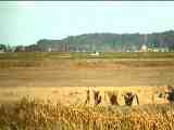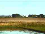 美浦村木原の取水樋管のある湖岸から眺めた陸側の風景です。取水施設の建物が邪魔していますが、取水施設の左後方に大須賀津集落が広がっています。