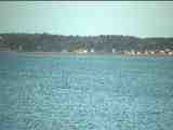 美浦村大須賀津の展望台から眺めた景観の続きです。夕陽がかなり低くなっているので、影が東方に長く伸びています。展望台の長い影が田圃に伸びきっています。さて、この地点から展望した土浦入は、少し意外な風景でした。この地点の東方の湖岸、大塚〜八井田〜牛込の湾曲した湖岸線は鋭く食い込んだ入り江のように見えます。また、この地点からは霞ヶ浦流域の中心部、三又沖の最も広い流域は見えず、行方市(旧玉造町)側の湖岸線が、美浦湖岸と出島湖岸と連続してしまって、霞ヶ浦がこの流域(土浦入)だけで完結しているかのような印象を受けます。