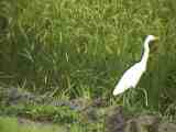 小高干拓の風景です。水田の用水路沿いの葦、用水路付近に立つ樹木の周囲に何羽ものサギを目にしました。この時に捉えたサギの映像は、「