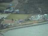 霞ヶ浦下流域の上空を移動中、次第に進行方向右手に浮島湿原、和田岬、和田入が見えてきました。比較的湖岸線が単調な霞ヶ浦の中でも、浮島湿原と和田岬は最も特徴ある形状を成しています。和田岬の付け根に広がる和田勝木集落、和田公園周辺がはっきりと捉えられました。霞ヶ浦湖岸の小袖ヶ浜にも集落があります。