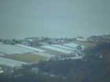 飛行位置は、行方市麻生上空です。進行方向の右手(北方向)には、天王崎(麻生)〜島並〜小高干拓(橋門)〜於下の湖岸線、さらに霞ヶ浦ふれあいランドのある行方市(旧玉造町)甲辺りまでの湖岸線が見えます。緩やかに曲線を描く湖岸線の凹凸が強調されていくつもの岬が出ているように見えます。視界が悪かったせいもあり、ピントが甘くなっている点はご了解下さい。小高干拓地が矩形を成して霞ヶ浦に突き出ている様がよくわかりますね。