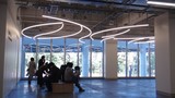 私の席はAというブロック、2階層になります。近くの通路には「風のテラス」という休憩スペースがあります。上の方に湾曲した蛍光灯があって、それが風を模しているのでしょうか。
