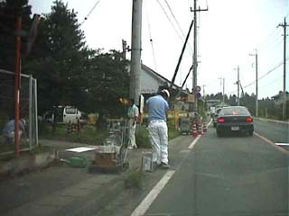 JR常磐線の寄居踏切から手野町へ抜け、R354に入りました。地図では、出島用水は、土浦五中の真横を通り、霞ヶ浦方向へ延びていることが確認できます。台地に広がる手野は古くからの集落で、この一帯は畑作中心の地域です。これが、新治台地の特性なのですが、新治台地の上に出島用水沿いに開けた陸田を延々と目にしてくると、この地域本来の畑作地帯が異質に感じられるから不思議です。土浦五中前を過ぎても、出島用水の存在は全く感じられません。おそらく、五中前で道路の白線引き作業をしている辺りの道の真下に出島用水の地下パイプラインが通っているものと思います。