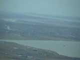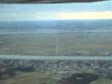 飛行位置は、旧牛堀町(現在は潮来市)島須〜潮来市築地辺りの上空ではないかと思います。遠方を撮影したため、視界も悪いのですが、ピントも合っていませんね。ご了解下さい。次第に北浦が近づいて見えてきました。視界は悪いですが、鹿島と太平洋が見えます。外浪逆浦も全て視界に収まっています。細長く続く半島状の鹿島の地形がよくわかりますね。右手の下方には潮来市築地(ついじ)から辻にかけての一角が見えます。