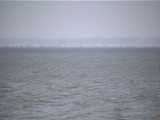 大山の湖岸から対岸を20倍ズームで展望しました。大山湖岸の左手(北北西方向)の対岸は出島(かすみがうら市(旧霞ヶ浦町))の湖岸線です。視界はあまり勝れず、ぼんやりとしか湖岸線は捉えられません。出島の先端部、歩崎がかろうじてわかる程度です。視界がよければ霞ヶ浦大橋、玉造・虹の塔まで見通せるはずですが、この時は見えませんでした。