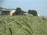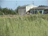 現在進んでいる地点の集落が大山の下新田、少し離れて見える集落が上新田です。旧安中(あんじゅう)村は、近世の18もの小さな村落(大字)が集まってできた村でした。余郷入が干拓されるまで、三方が湖に囲まれた半島に位置していました。地図で見ると、大字として今も残るこれらの村落がモザイク状にびっしりと安中の半島を埋め尽くしているかのようです。その先端に位置する大山の湖岸に上/下新田集落があります。「新田」の名からは、おそらく近世に形成された集落であることがわかります。大山の集落とは集落の並びが少しずれています。周囲の風景からもこの集落が湖岸の低湿地に開けたことがよくわかります。