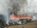 妙岐の鼻*伝統の野焼き(浮島湿原)2004良い葦作りのために◆霞ヶ浦最大の湿原*妙岐の鼻◆茨城県稲敷郡桜川村。妙岐の鼻は浮島、和田浦に隣接した素晴らしい湿原です。妙岐の鼻は霞ヶ浦最大の茅葺き屋根に使用する茅場です。最近では茅葺き屋根も少なくなりましたが、伝統的な霞ヶ浦の茅生産は、現在も続けられています。葦を主体とする植生の他、最近霞ヶ浦であまりみられなくなった湿原植物も多く残されています。稲敷大橋の下付近では現在はわかりませんが水苔なども多くみられました。野焼きは、十数年前までは、伝統行事として、夜間花火と共に行われていたそうです。04年3月3日、野焼きは朝10時から今年の場所として、稲敷大橋近くの部分が行われました。野焼きの後は、きれいな茅が直ぐ芽をだしてくるそうです。この付近の広い部分が今年04年の秋頃水郷筑波国定公園に追加指定されるそうです。指定されるのを機会に国定公園としての認識が高まるとよいと思います。今までの水郷筑波国定公園は余り認識されないまま今日に至りました。その間霞ヶ浦の景観は大きく変化しました。国定公園とは。もっと議論があって欲しいと思います。