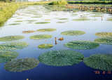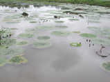 ◆オニバス霞ヶ浦◆Euryale ferox Salisb. about in lake Kasumigaura.オニバスの大きな群落が1960年前後、霞ヶ浦高浜入りにあった。当時霞ヶ浦高浜付近は現在とかなり異なった植生景観であった。高浜駅前の大きな船着き場が有り、その水路に貸し船屋が数件あった。船に乗り竿をさして付近の谷原を巡る釣り人も多かった。谷原の浅瀬はかなり広く、マコモを主体に蓮がおおく、ところどころオニバスがあった。オニバスは年がすぎる毎に少なくなり1990年代は多いときで石川湖岸、玉里湖岸、高浜等であわせて生育したものが約10個体ぐらい、波と栄養分のためか大株とならず葉の直径25〜30cmぐらい。三村前付近では当時、5月の末から6月にかけてオニバスの実生発芽の個体が岸辺に流れ着いていた。漂ったこれらのいくつかを採取して育成したところ成株となった。オニバスはスイレン科で一年草である。三村護岸、石川護岸(当時)にはオニバスの空になった種子がおどろくほど打ち上げられていた。オニバスは2000年をすぎるとほとんど湖内でみられなくなった。オニバスには水の上で咲く解放花と水中の閉鎖花がある。