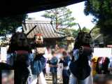 石岡のお祭り、総社宮神事05/09/17獅子舞、ささらの舞、御輿江戸時代から伝統のある石岡の祭りが2005年9月17日から19日までの3日間行われました。今年は常陸國総社宮の神事と御輿の出発ををお伝えします。富田町のささらと土橋町の獅子舞ほかが舞う中、総社宮からご神体が御輿にうつされる儀式です。そこから御輿が出立し、今年年番町の神社の御仮屋がある中町まで御輿が街中を勢いよく通ります。多くの獅子と山車が先導し又、あとからも続きます。