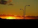 2009年1月13日午後3時を少し回ったころ常磐線高浜駅を降りる。愛郷橋まで約600mを歩く。恋瀬川の護岸を上流方面へ向けてゆっくりすすむ。厳しい真冬の風が身体にしみわたる。常磐線の鉄橋の下を抜け愛嬌橋から護岸を約1.8km歩いて平和橋付近にたどりつく。炎に包まれた太陽は平和橋の端にいまや消えてゆかんとしている。みどり、オレンジ、赤の炎はプロミネンスの拡大か。恋瀬川西南の空はやがて炎は燃え尽き、厳寒の夕闇が迫ってくる。高浜駅へ戻ろうか、いや、家まで歩いてみようと力を振り絞り、交通量の多い夕闇の道路を遠慮がちにとぼとぼあるきはじめた。