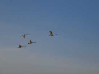 大空の白鳥、高浜の朝 (a flight of wild swans)