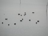 氷上の鴨・湖岸の鴨・オオバンと白鳥・霞ヶ浦、玉里村湖岸06/01