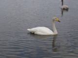 オオハクチョウとコハクチョウ・土浦市手野06/02先月(1月)集まりはじめ時はコハクチョウとがほとんどだったがコブハクチョウが十数羽とやや多いときもありまた、時々オオハクチョウも混じっている。 オオハクチョウ今年2002は各地で低温で湖や沼が凍り白鳥にとって厳しい冬であった。この画像は霞ヶ浦、護岸堤の裏側にある蓮田に退避したオオハクチョウなどの記録である。――――――――――――――――――――――――――――――