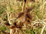 恋瀬川とオオオナモミ冬姿060208オオオナモミとアレチウリの群落が夏あった場所を訪れてみた。アレチウリは河川敷などにこぼれてしまってなかったがオオオナモミは背丈ぐらいの枯れ姿が一面を覆っていた。ここは自然がとても良い恋瀬川サイクリング道路に沿った場所だが夏は足を踏み込む勇気がない。河川敷には草の下になったクコが多く頭をそろえていた。また、所々には曼珠沙華の塊があった。