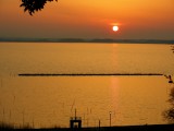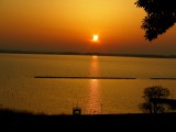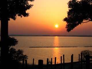 霞ヶ浦、浮島に沈む日・対岸麻生高台から