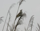 ヨシキリの写真・霞ヶ浦2007五月末の午後黒雲が南西から近づいてきました。揺れるヨシにしっかり掴まって、あるいは滑り落ちそうになってもヨシキリは一生懸命に鳴いていました。人がちかづくのも気にしないで。