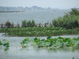 野蓮と湿原、霞ヶ浦、高浜付近2007私の好きな霞ヶ浦のスポット。霞ヶ浦っていい!野蓮とコウホネと水中の葦が湿原を形成。人は自然に勝てるか?石岡市高浜、恋瀬川河口付近から小美玉市高崎(旧玉里村)までの霞ヶ浦湖岸は自然の湿原、ヨシ原がかなり昔のままの姿に近く残されている。量的には減っているが美しい霞ヶ浦を保っている。高崎の野蓮は夏、美しいピンク色の花を咲かせる。かっては盆花に収穫船が採取した。上高崎、湖岸で目を凝らし彼方水中の葦原を見ると手前にコウホネの群落がみられる。 高崎付近の霞ヶ浦はかって湖岸から100m位先までササバモなどの大きな群落が隣り合ってあり、釣り人がその間で竿をおろしていた。魚篭(びく)に入りきれないほどの鮒や鯉の収穫が時折あった。風の日の波はこれらの沈水植物や野蓮、真菰、葦の湿原によってかなり弱められた。野蓮はやはり高浜から高崎までの湖岸近くにかなり多くあった。野蓮は大きな群落であったが間は棹船が行き来出来た。所々にはこいせんや鮒箭が仕掛けられていた。知人の漁師さんの話によると恋瀬川の水流が玉造近くまであったそうだ。現在は園部川河口と梶無川河口部の水中に築堤があり水の移動は穏やかであるが水の流れを複雑にしている。